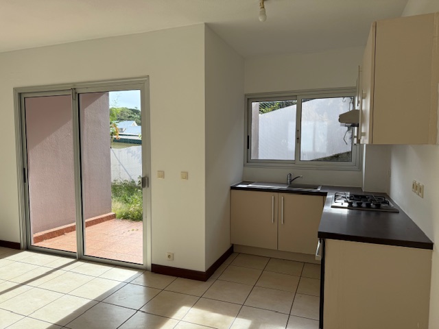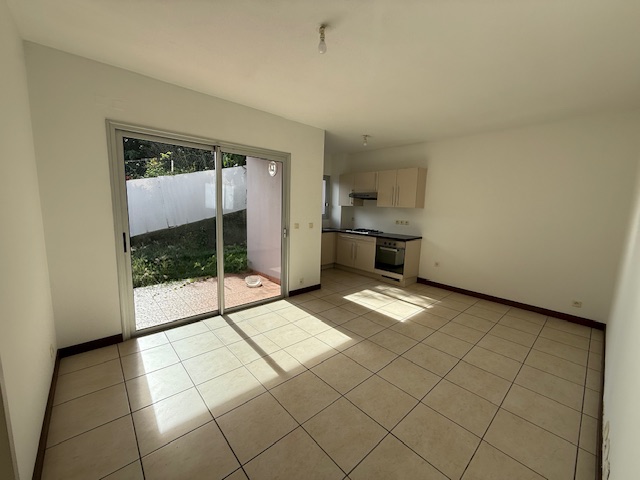 Appartement lumineux de type F2 de 45 m² avec terrasse couverte et jardin.