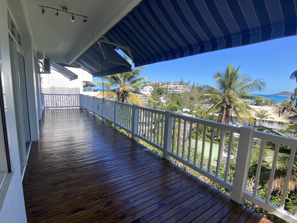 – 1 F3 traversant : 2 chambres climatisées, un salon cuisine donnant sur une terrasse de 26 m² avec une vue magnifique, une SDE, WC séparé, couloir.